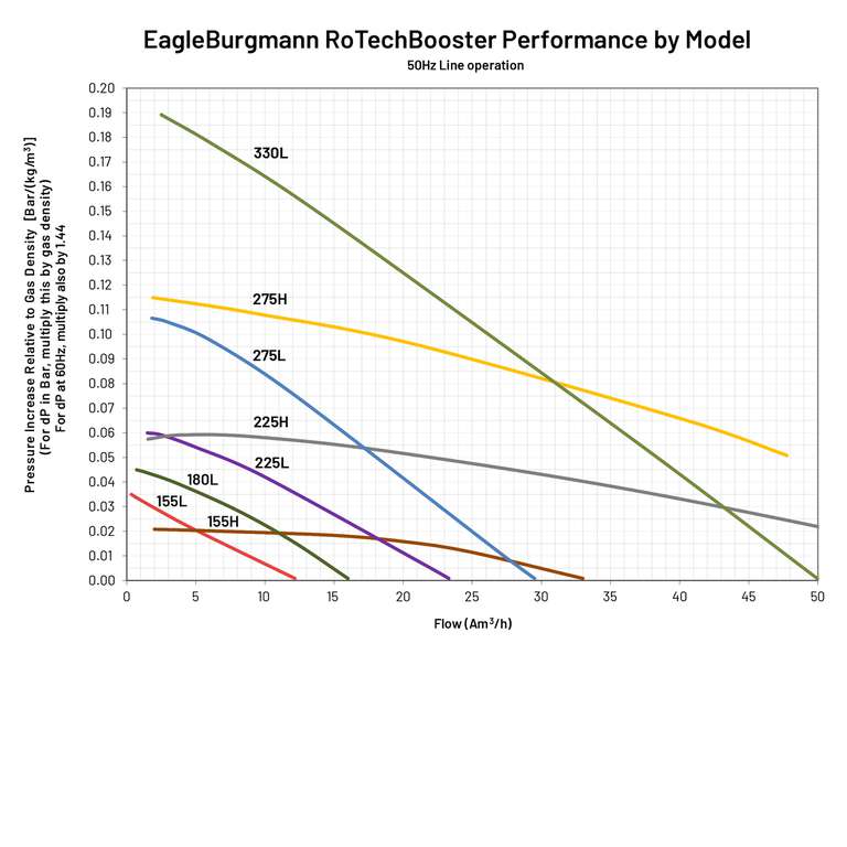 - For pressure increase in bar, multiply the y-axis value by kg/m3 gas density at inlet pressure and temperature.